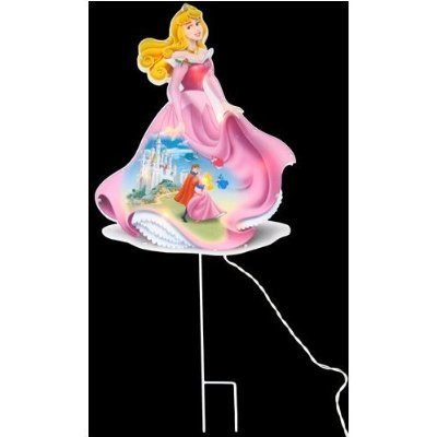 Great indoor or outdoor - Includes ground stakes.Measurements: 17"H x 13"L x .5"W.Lighted Yard Decor - Aurora.Officially Licensed Disney Product.17" Tall w/ 10 Mini Lites. Disney Princess Aurora Lighted Yard ArtItem #169028Illuminated with 10 clear mini lightsAurora Dimensions: 17"H x 13"W x 0.75"DGround stake measures: 13"HMaterial(s): Heavy-duty cardboard, vinyl, plastic and metalUL listed for indoor/outdoor use60" white lead cordContains 1 plug with end connector allowing you to stack multiple sets of lights together Comes with spare replacement bulbs and fuses120 volts, 60Hz, 0.