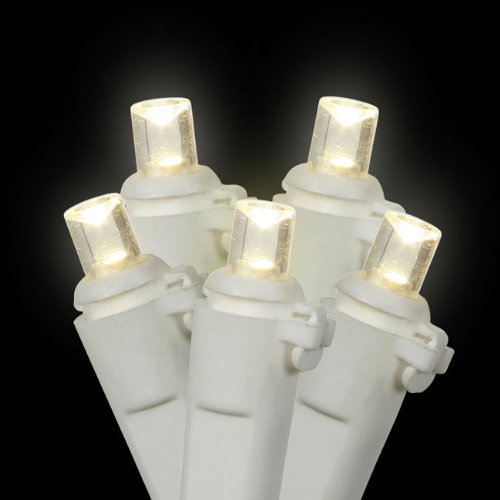 Features:Color: warm clear bulbs / white wire"Warm clear" also known as "warm white" has a nice natural warm incandescent like glowNumber of bulbs on string: 100Bulb size: concave wide angleSpacing between each bulb: 4 inches Lighted length: 33.3 feet Total length: 34 feetWire gauge: 22