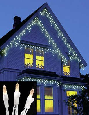 Set of 70 Warm Clear LED M5 Icicle Christmas Lights - White Wire Feature