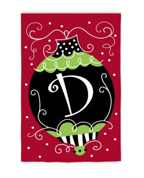 Monogrammed "D" Red, Green and Black Ball Ornament Christmas Flag 18" x 12.5" Feature