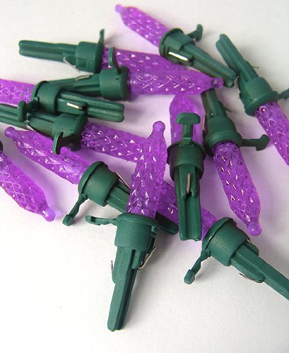 Pack of 12 Purple LED M5 Mini Replacement Christmas Light Bulbs - Green Husk Feature