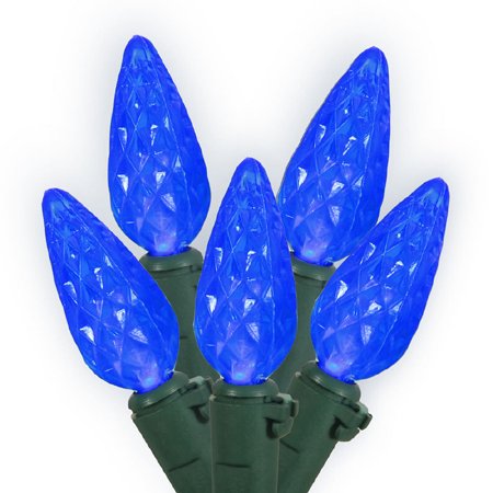 Set of 70 Blue LED C6 Christmas Lights - Green Wire Feature