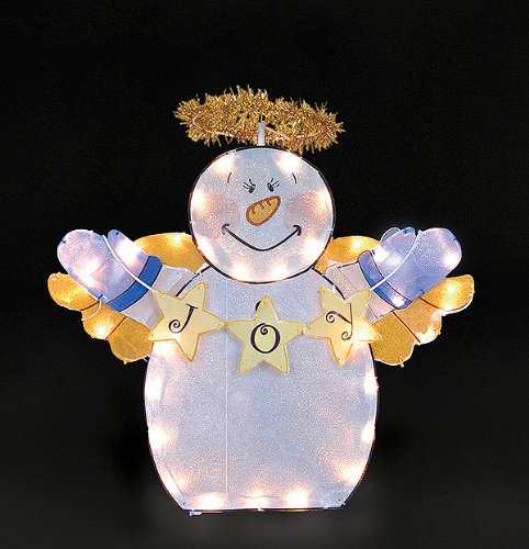 24" Snowman Angel With Joy Sign Lighted Gel Christmas Yard Art