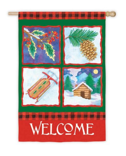 Country Cabin Winter Bliss "Welcome" Christmas Flag 43" x 29" Feature