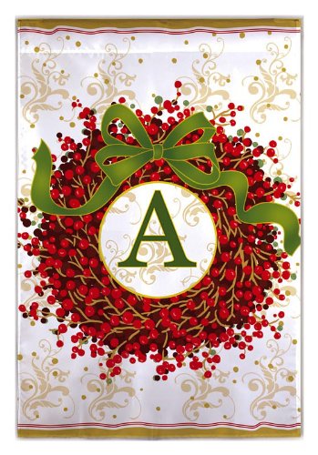 Holiday Christmas Red and Green Berry Wreath Monogram "A" Flag 12.5" x 18"