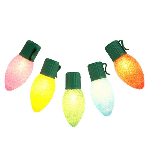 Set of 10 LED Multi-Color C7 Sugared Christmas Lights - Green Wire
