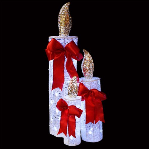 Set of 3 White LED Lighted Sequin Candle Christmas Yard Art Decorations Feature