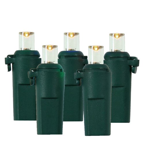Set of 50 LED Warm Clear Wide Angle Christmas Lights - Green Wire