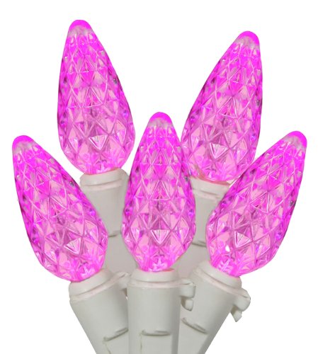 Set of 70 Hot Barbie Pink LED C6 Christmas Lights - White Wire Feature