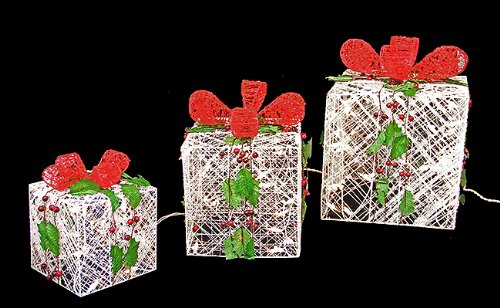 3-Piece Lighted Beaded Crystal Christmas Present Yard Art Set - Clear Lights Feature