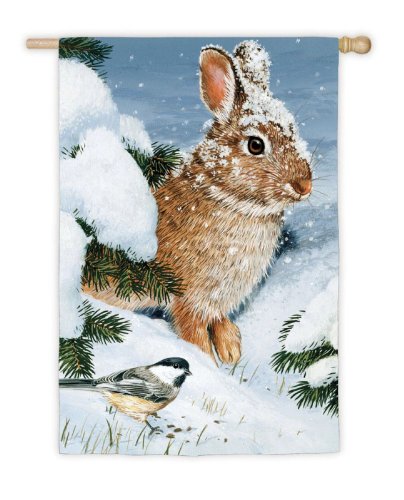 Snow Covered Brown Cottontail Bunny Decorative Christmas Flag 43" x 29" Feature