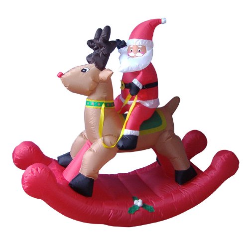 4' Airblown Inflatable Rocking Reindeer & Santa Lighted Christmas Yard Art Decor