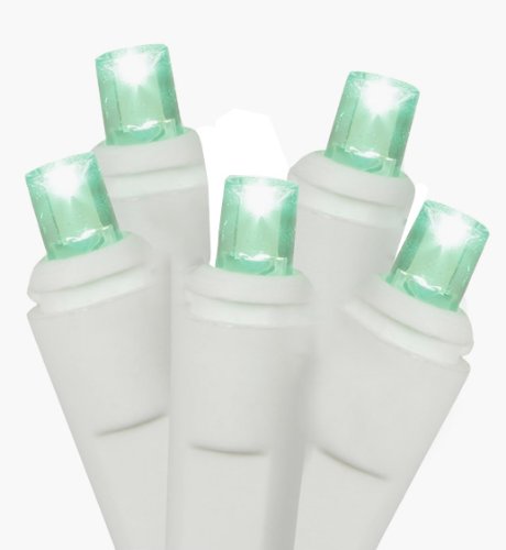 Set of 50 Commercial Grade Green LED Wide Angle Christmas Lights - White Wire Feature
