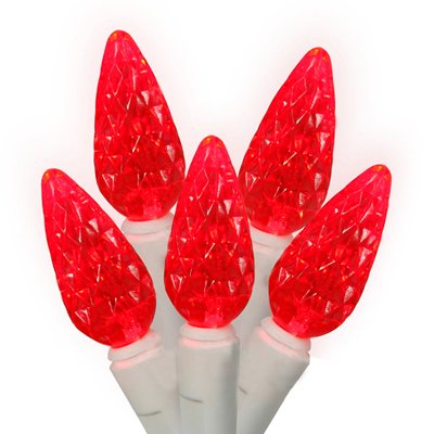 Set of 50 Commercial Grade Red LED C6 Christmas Lights - White Wire Feature