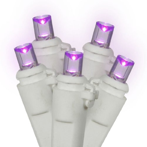 Set of 50 LED Purple Wide Angle Christmas Lights - White Wire