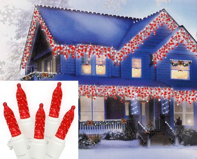 Set of 70 Red LED M5 Twinkle Icicle Christmas Lights - White Wire Feature