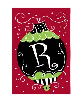 Monogrammed "R" Red, Green and Black Ball Ornament Christmas Flag 18" x 12.5"