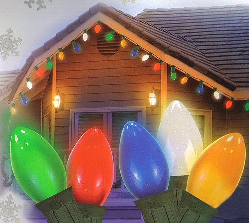 Set of 25 Opaque Multi-Color C9 Christmas Lights - Green Wire