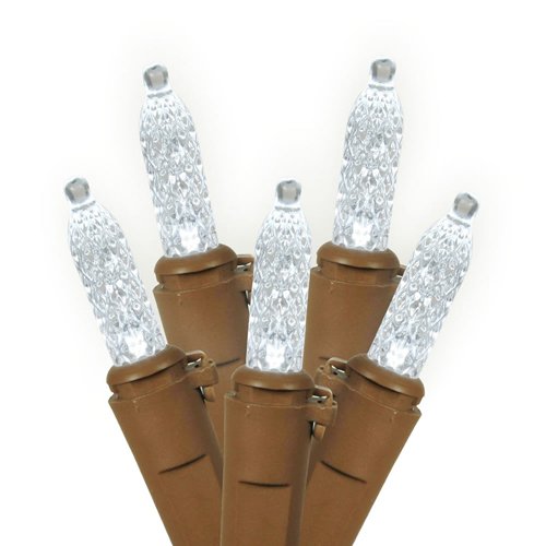 Set of 70 Pure White LED M5 Mini Christmas Lights - Brown Wire Feature