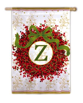 Holiday Christmas Red and Green Berry Wreath Monogram "Z" Flag 29" x 43" Feature