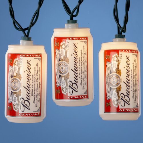 Weather Resistant for Both Indoor AND Outdoor Use; UL Approved Fun gift or decoration for any Beer enthusiast; in decorative box suitable for gift-giving 10 Foot Light Set features miniature Budweiser Beer Cans End To End with Fused Plugs for Stringing MORE than one set - get two or more!