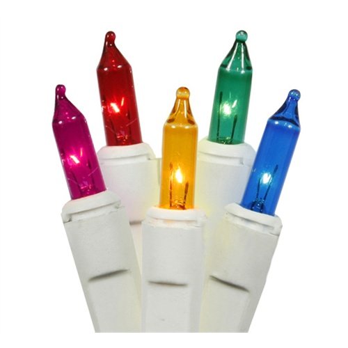 Set of 100 Multi-Color Everglow Mini Christmas Lights With White Wire Feature
