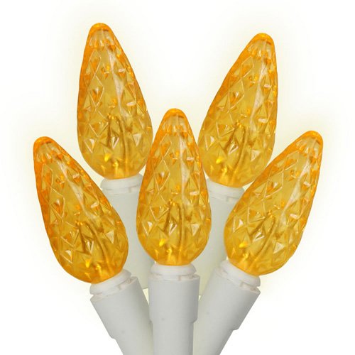 Set of 50 Commercial Grade Yellow LED C6 Christmas Lights - White Wire Feature