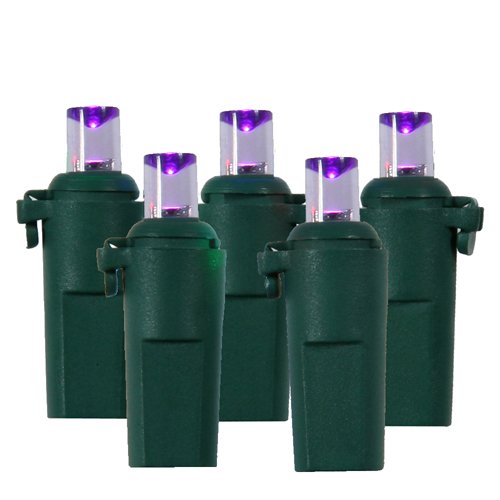Set of 50 LED Purple Wide Angle Christmas Lights - Green Wire