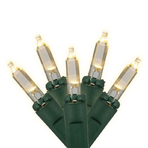 Set of 50 LED Warm Clear White Mini Christmas Lights - Green Wire