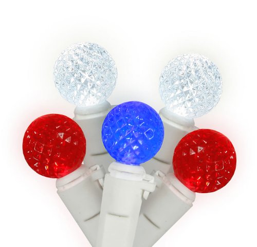 Set of 50 Red White and Blue LED G12 Berry Fashion Christmas Lights - White Wire