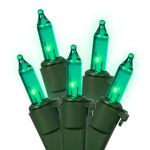 Set of 50 Teal Green Mini Christmas Lights - Green Wire Feature