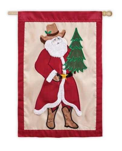 Festive Christmas Cowboy Santa Claus Holiday Flag 18"x 12.5" Feature