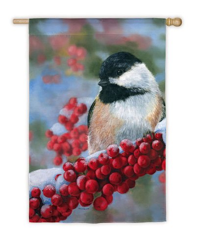 In the Birches Black-Capped Chickadee on Berry Branch Christmas Flag 18" x 12.5" Feature
