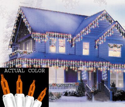 Set of 100 Amber Orange Everglow Icicle Christmas Lights - White Wire