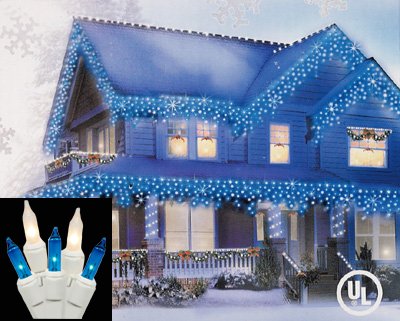 Set of 100 Blue and Clear Frosted Icicle Christmas Lights - White Wire Feature
