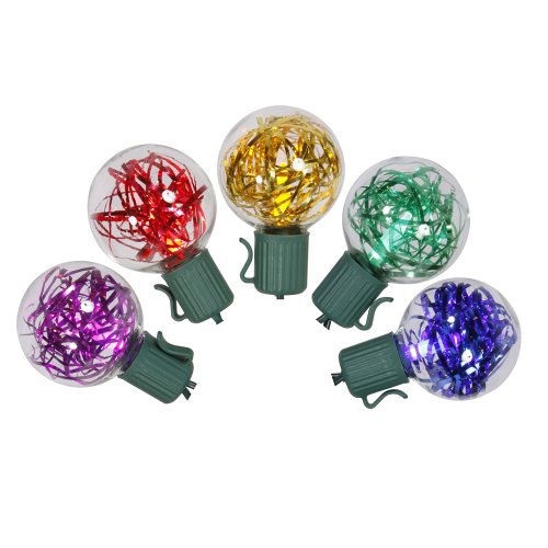 Set of 25 Multi-Colored LED G40 Tinsel Christmas Lights - Green Wire