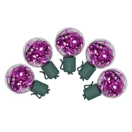 Set of 25 Pink LED G40 Tinsel Christmas Lights - Green Wire Feature