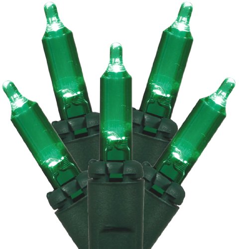 Set of 50 LED Green Mini Christmas Lights - Green Wire