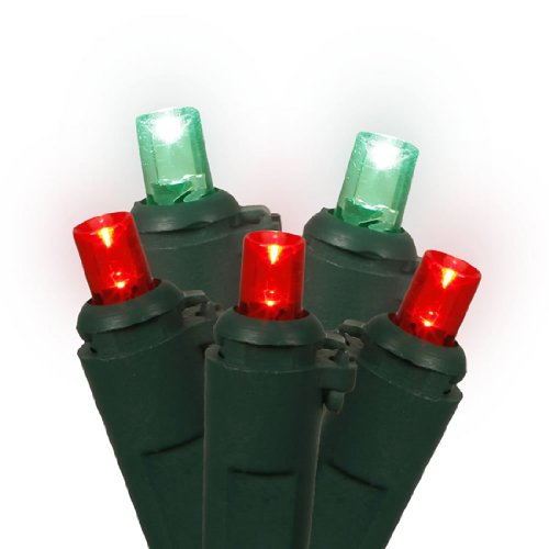 Set of 50 LED Red & Green Wide Angle Christmas Lights - Green Wire