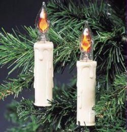 Set of 7 Flicker Flame Candle Clip-On Christmas Lights - Green Wire Feature