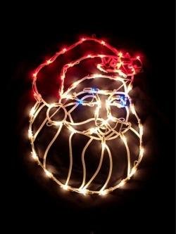 16" Lighted Santa Claus Christmas DecorationItem #V490526Illuminated by 50 red, blue and clear mini lightsOne-sidedNo assembly required. Decoration is 1-pieceUL listed for indoor or outdoor useMaterial(s): Durable high impact plastic/glass bulbs/wireDimensions: 16"H x 12"W x 0.