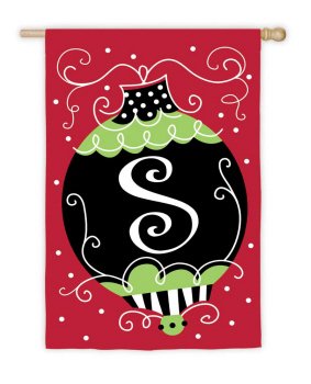 Monogrammed "S" Red, Green and Black Ball Ornament Christmas Flag 43" x 29" Feature