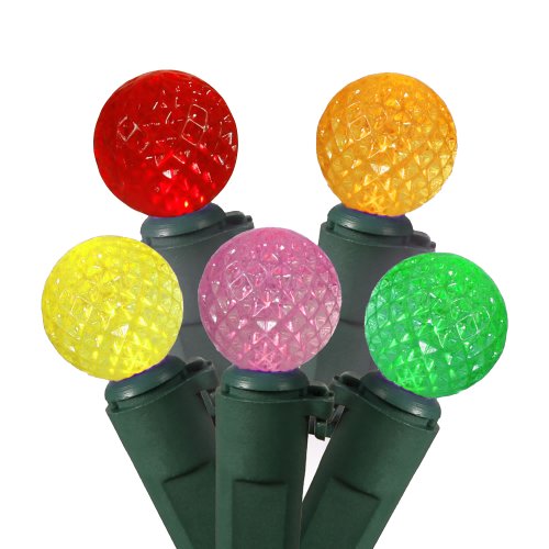 Features:Color: multi bulbs / green wire Multi-color consists of yellow, orange, pink, green and deep red bulbs (not your typical multi colors...these are fashion colors)Number of bulbs on string: 50 Bulb size: G12 (15mm diameter, berry lights)Spacing between each bulb: 4 inches (10.16cm) Lighted string length (approx): 17 feet (5.18m) Total string length (approx): 18 feet (5.