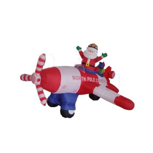 8' Airblown Inflatable Animated Santa Flying Plane Lighted Christmas Yard Decor