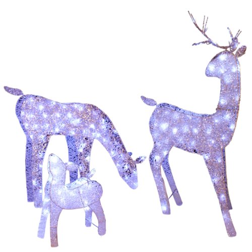Set of 3 Silver Splendor White LED Deer Family Christmas Yard Art Decoration 48"