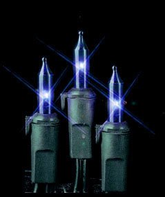 Set of 35 Blue Mini Christmas Lights - Green Wire Feature
